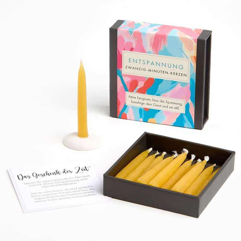 Das britische Unternehmen Cotton & Grey wurde 2021 von Paul Banyard und Claire Sowden gegründet. Die 20-Minuten-Kerzen entstanden während des Lockdowns, als die Beiden für eine enge Freundin, die eine schwierige Zeit durchlebte, eine kleine Schachtel mit Bienenwachskerzen und handgeschriebenen Affirmationskarten zusammenstellten. Das liebevolle Geschenk half ihr, sich zu entspannen und ihr Wohlbefinden wiederzufinden – und sie war total begeistert davon.