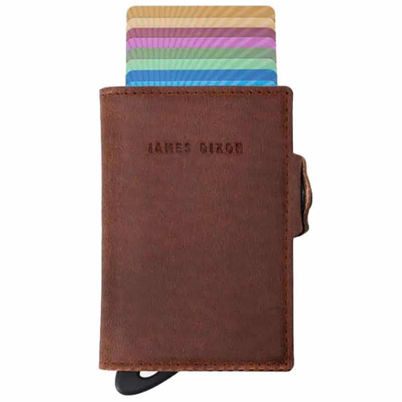 James Dixon produziert Kreditkartenetuis aus pflanzlich gegerbtem Rindsleder und veganem Apfelleder. Die Kartenhalter bestehen aus einem Aluminiumgehäuse mit integriertem RFID-Schutz für bis zu 9 Karten. Das verwendete Rindsleder stammt aus Dänemark und Norwegen und wird in Italien gegerbt. Die Gerberei wurde 2022 von der "Leather Working Group" mit dem Gold Rating ausgezeichnet. Diese Organisation setzt sich für eine nachhaltige Zukunft mit verantwortungsvollem Leder ein. Alle Portemonnaies werden in sorgfältiger Handarbeit in Zusammenarbeit mit diversen sozialen Institutionen in der Schweiz hergestellt.