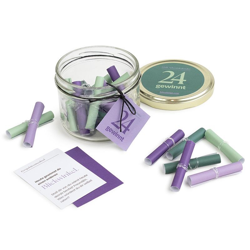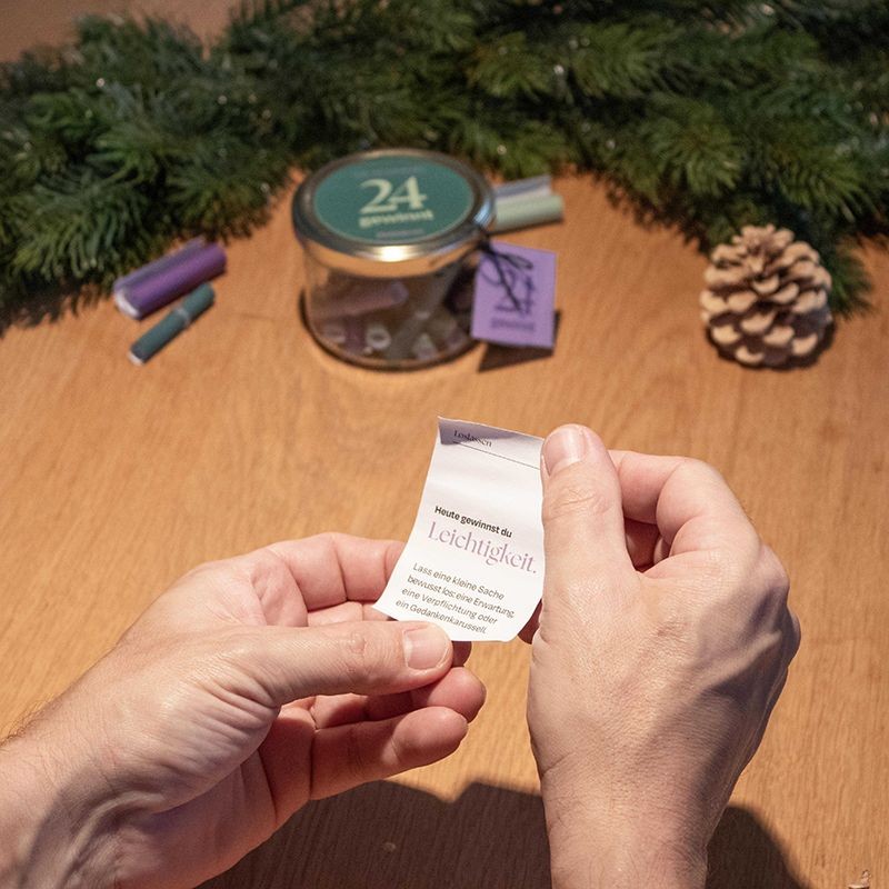 Stell dir vor: Du ziehst ein Lösli – und gewinnst garantiert etwas. Der Lösli-Adventskalender bringt dieses kleine, unerwartete Glück in die Vorweihnachtszeit. Jeden Tag ziehst du ein Los aus dem Glas – und gewinnst: einen neuen Blickwinkel, ein stilles Erinnern, ein gutes Gespräch… oder einfach einen Moment zum Innehalten. 24 kleine Impulse, die dich durch die Adventszeit begleiten – leicht, tiefgründig, überraschend. Und vielleicht, ganz nebenbei, auch einen neuen Zugang zur Weihnachtszeit.
