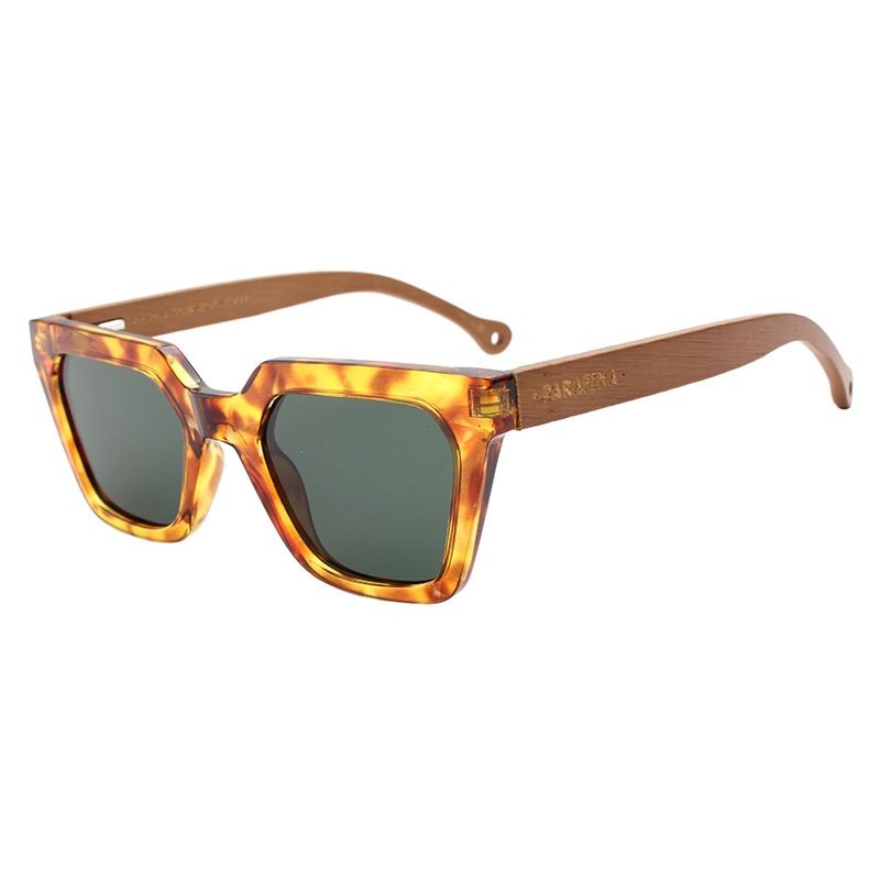 Sonnenbrille aus 100% recycelten PET-Flaschen für den Rahmen und Bio-Bambus für die Bügel. Die Gläser haben einen UV-Schutz von 400 (Kat. 3) und sind polarisiert, d.h. sie reduzieren die Blendung, den optischen Stress und bieten einen besseren Kontrast.