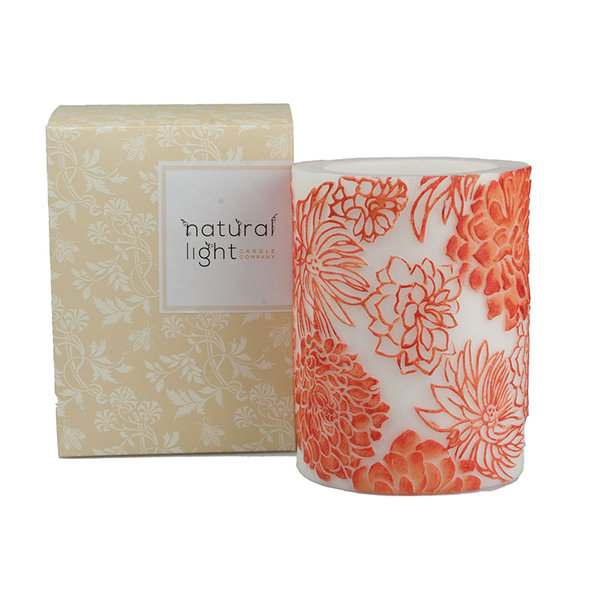 Natural Light Candle Kerze gross Chrysanthemum weiss/orange