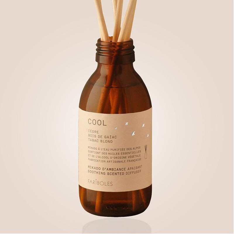 Der Raumduft Diffuser wurde in Frankreich handgefertigt. Er besteht aus in Grasse hergestelltem Parfüm, ätherischen Ölen, pflanzlichem Alkohol und gereinigtem Wasser aus den Alpen. Kopfnote: Zeder, Herznote: Gaiac-Holz, Basisnote: Blonder Tabak.