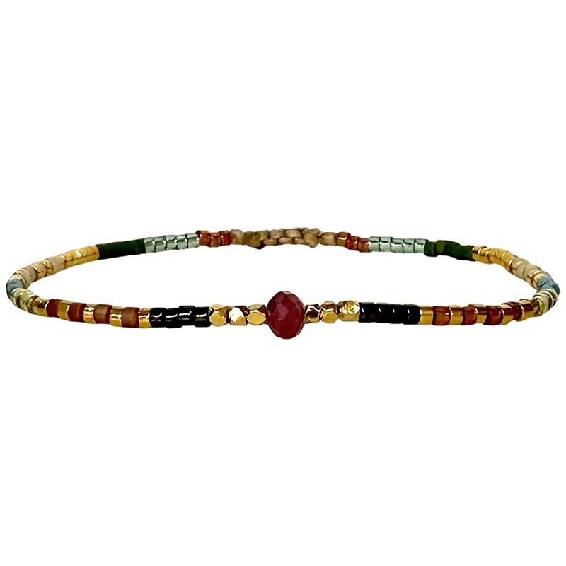 Die Armbänder, die Lenny designt, werden von kolumbianischen Handwerkskunstschaffenden nach traditionellen Methoden hergestellt. Sie bestehen aus Polyesterfäden und japanischen Glasperlen und sichern den Künstlern eine langfristige, faire Entlöhnung.