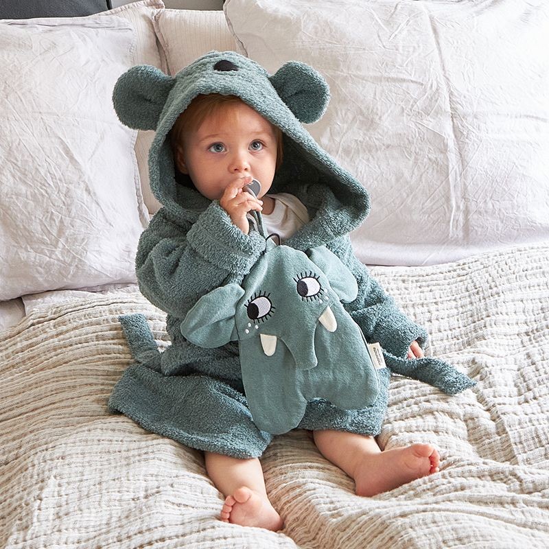 Superweiches Kuscheltuch aus 100% Bio-Baumwolle. Der Elefant ist fest mit dem Kuscheltuch verbunden und nicht ablösbar. Geeignet für Babys ab 3 Monate.