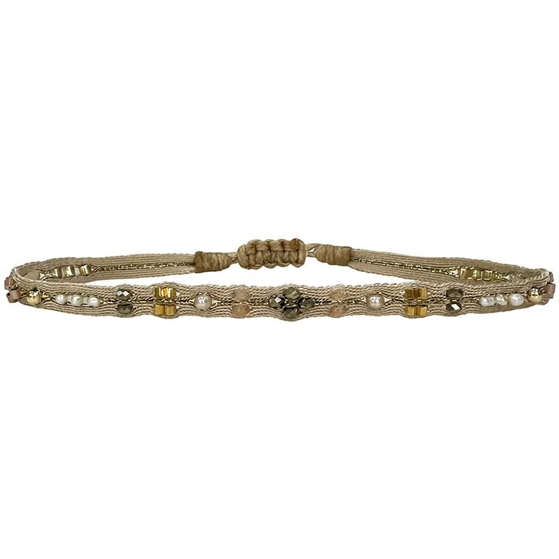 Die Armbänder, die Lenny designt, werden von kolumbianischen Handwerkskunstschaffenden nach traditionellen Methoden hergestellt. Sie bestehen aus Polyesterfäden und japanischen Glasperlen und sichern den Künstlern eine langfristige, faire Entlöhnung.