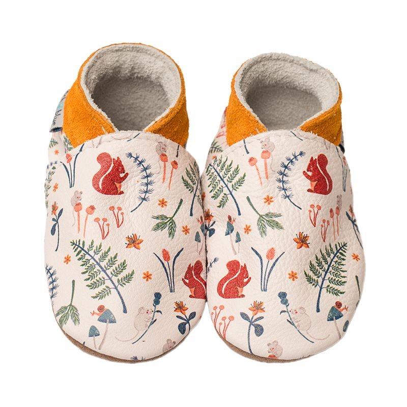 Süsse Babyfinken aus 100% weichem Leder, das die Füsse schützt und ihnen ein natürliches Wachstum ermöglicht. Geschmeidige, rutschfeste Wildledersohlen. Das elastische Material am Knöchel garantiert, dass der Schuh am Fuss bleibt. Empfohlen für das Tragen im Haus. Durch die Handarbeit können optische Abweichungen entstehen.