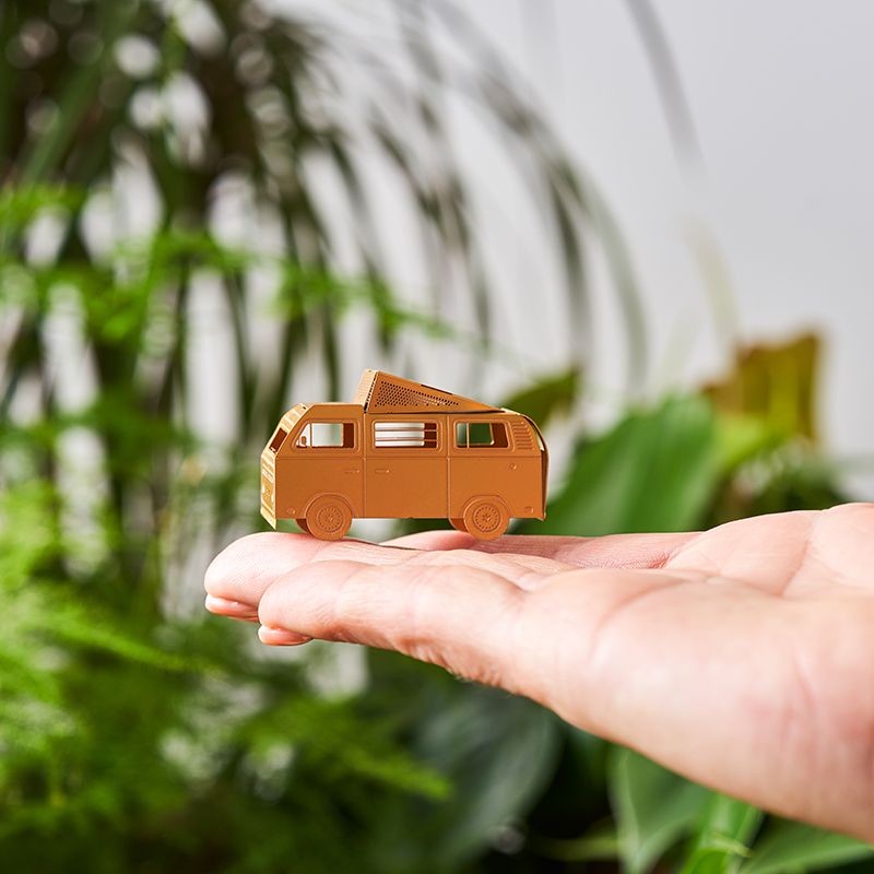 Das Miniaturmodell eines Wohnmobils ist mit wunderschönen Details versehen. Der Bausatz lässt sich leicht zusammenbauen, indem du das Metall in Form biegst. Es sind keine Klebstoffe erforderlich, aber eine Pinzette oder eine kleine Zange können hilfreich sein, um die Teile in Form zu biegen. Eine Schritt-für-Schritt-Anleitung ist in der Verpackung enthalten.