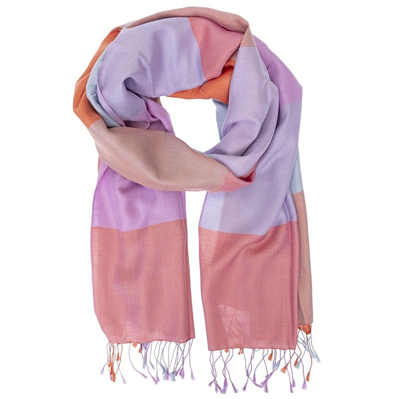 Changemaker Seidenschal Multicheck red/lightblue/lilac
