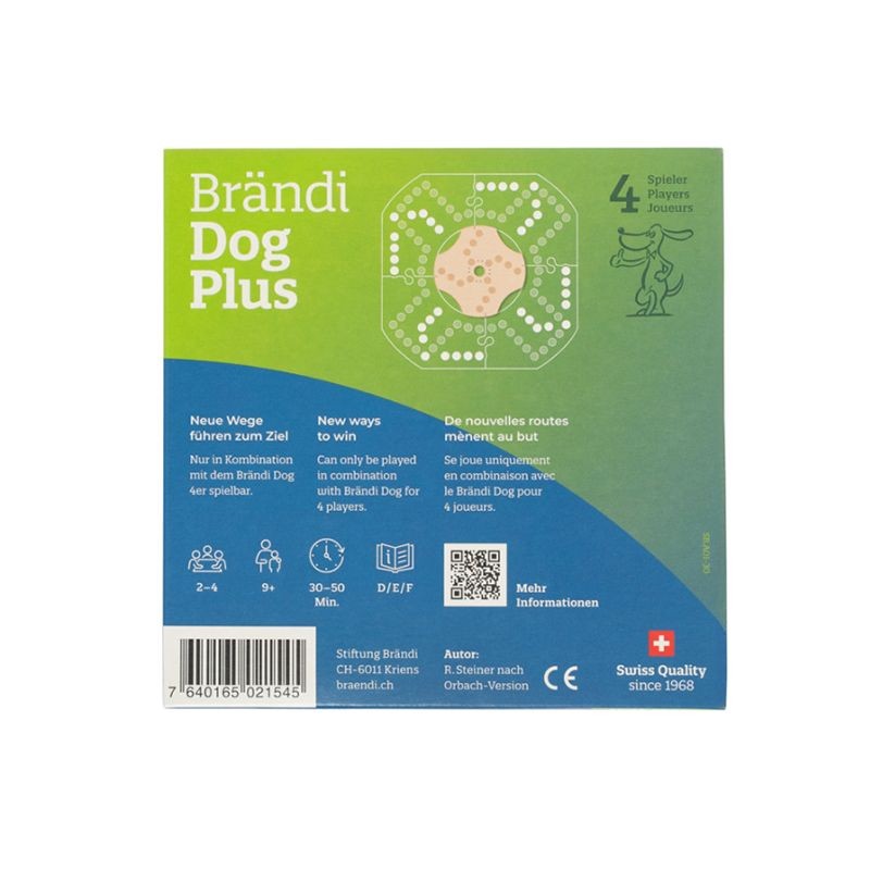 Mit dem Brändi Dog Plus wird der Klassiker Brändi Dog noch spannender, noch taktischer und noch variantenreicher. Die Ergänzung bringt einen neuen Charakter ins Spiel ohne das bewährte Spielprinzip zu verändern. Es entstehen Abkürzungen und fiese Chancen seine Gegner heimzuschicken. Das Plus-Spielfeld darf nur von einer bestimmten Position aus betreten werden. Nur in Kombination mit der Brändi Dog Grundversion spielbar. Anzahl Spieler: 2-4. Alter: ab 9 Jahren. Inhalt: 1 Spielbrett, 1 Beilageblatt (Kurzanleitung).