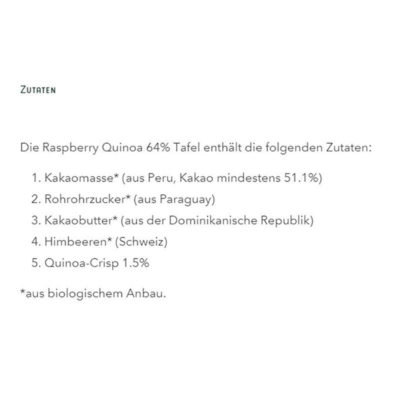 Choba Choba Bio-Schokolade 64% Raspberry Quinoa