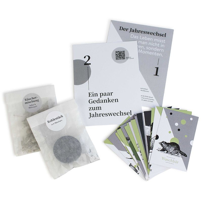 Der Jahreswechsel lädt dazu ein, innezuhalten, Vergangenes zu reflektieren, Dankbarkeit zu empfinden und sich mit Offenheit und Zuversicht auf das neue Jahr zu freuen. Diese Ritualtüte begleitet dich dabei, das alte Jahr zu verabschieden und das Neue zu begrüssen – ein besinnlicher und freudiger Akt zum Jahresübergang. Die Tüte bietet dir alles, um ein Ritual stimmungsvoll zu gestalten. Dazu zählt eine ausführliche Anleitung sowie viele kleine Helfer und Angaben, was du aus dem eigenen Haushalt mitbringen solltest. Das Ritual zum Silvester kannst du allein oder mit bis zu 10 Weggefährt*innen durchführen.