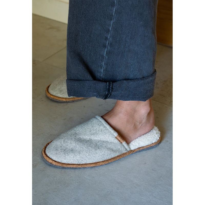 Die Hausschuhe werden in Handarbeit in Portugal hergestellt. Dank der verwendeten Schurwolle aus Ardèche und dem Innenfutter aus Bio-Baumwolle sind die Schuhe warm und bequem. Ausserdem sind die Sohlen rutschfest.