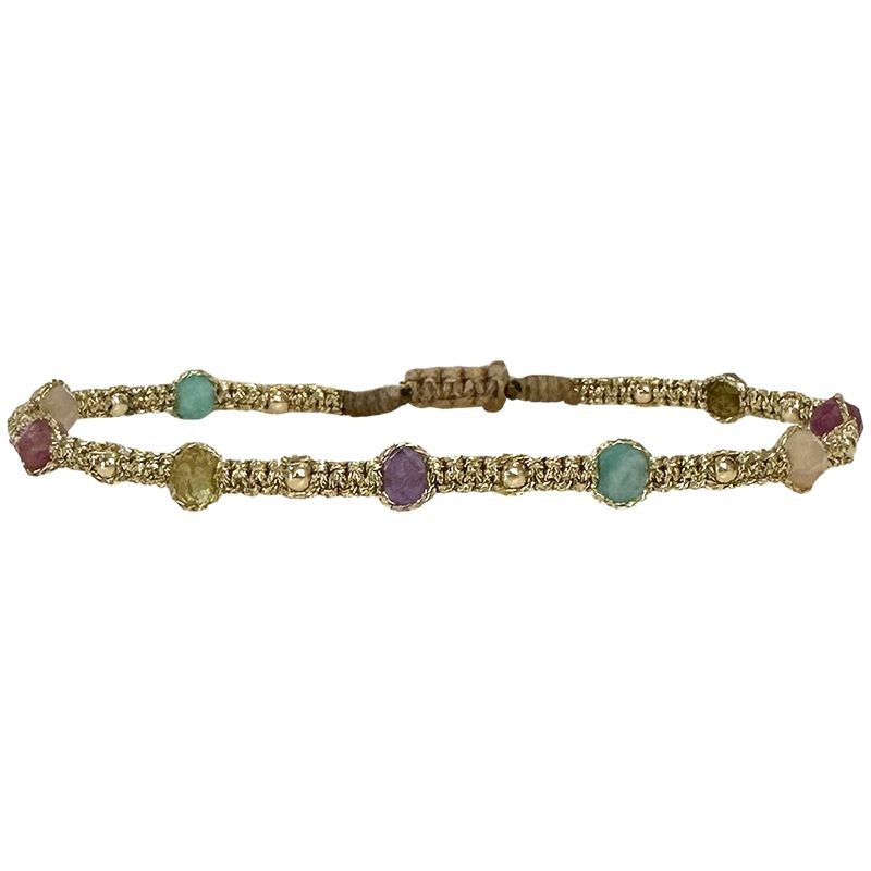 Die Armbänder, die Lenny designt, werden von kolumbianischen Handwerkskunstschaffenden nach traditionellen Methoden hergestellt. Sie bestehen aus Polyesterfäden und japanischen Glasperlen und sichern den Künstlern eine langfristige, faire Entlöhnung.