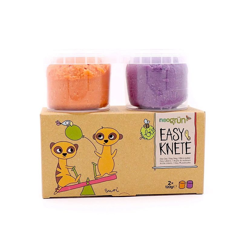 Mit neogrün Easy-Knete können kleine Künstler ihre motorischen Fähigkeiten entwickeln und sich konzentriert und fokussiert ausdrücken. Die Kombination aus natürlichen, umweltfreundlichen Inhaltsstoffen und reinsten pflanzlichen Pigmenten macht das kreative Erlebnis sicher, nachhaltig und farbenfroh. Nach einigen Stunden in der Luft beginnt die vegane Knete zu trocknen. Sie behält dabei auch nach dem Trocknen ihre ursprüngliche Form und ihren Glanz. So können die kleinen Kunstwerke für die Familiengalerie konserviert oder mit neogrün Fingerfarben bemalt werden. ACHTUNG! Kinder unter 3 Jahren sollten von Erwachsenen beaufsichtigt werden. Kleinteile könnten verschluckt werden! Die natürlichen Farben können auf Textilien und Oberflächen Spuren hinterlassen, die einfach mit der normalen Wäsche auswaschbar sind, oder mit einem feuchten Tuch entfernt werden können. Schützen Sie empfindliche Oberflächen vor dem direkten Kontakt mit der Modelliermasse. Enthaltene Farben: Orange, Violett.